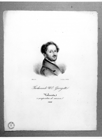 - Iscrizioni: in basso al centro:"Ferdinando U.E.Giorgietti/Violinista/ e compositore di musica/1838." ;in basso a destra:"Lit. Salucci 1500"; in basso a sinistra:"Martini dis.".