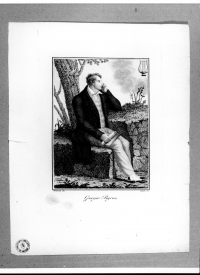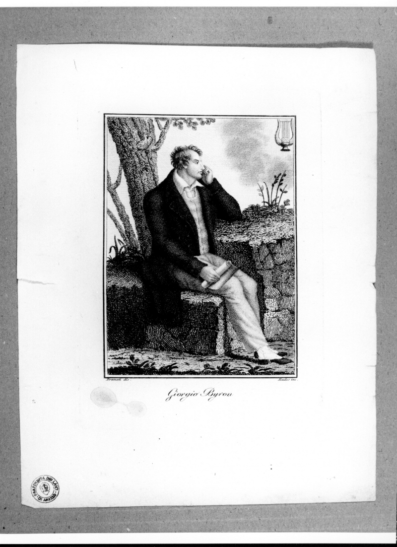 - Iscrizioni: in basso al centro:"Giorgio Byron."; in basso a destra:"Rados inc."; in basso a sinistra:"Bramati dis.". Stampa tratta da:"Serie di vite e ritratti de' famosi personaggi degli ultimi tempi. Opera dedicata a Sua Eccellenza il Signor conte Enrico di Bellegarde".