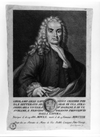 - Stemmi: in basso al centro, stemma gentilizio con tre gigli. Iscrizioni: GIROLAMO GIGLI NATO NENCI CELEBRE POETA /[...]Preso da un Ritratto di Mano di Gio. Batta Canziani Pittor Veronese; in basso a destra: "Gaet. Vascellini fc.".