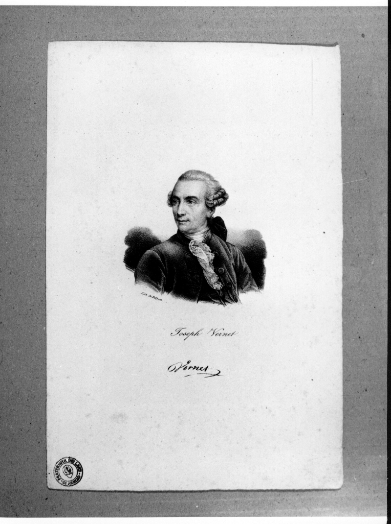 - Iscrizioni: in basso al centro:"Joseph Vernet"; in basso al centro; manoscritto a penna e inchiostro:"Joseph Vernet."; in basso a sinistra: " Lith de Delpech.".