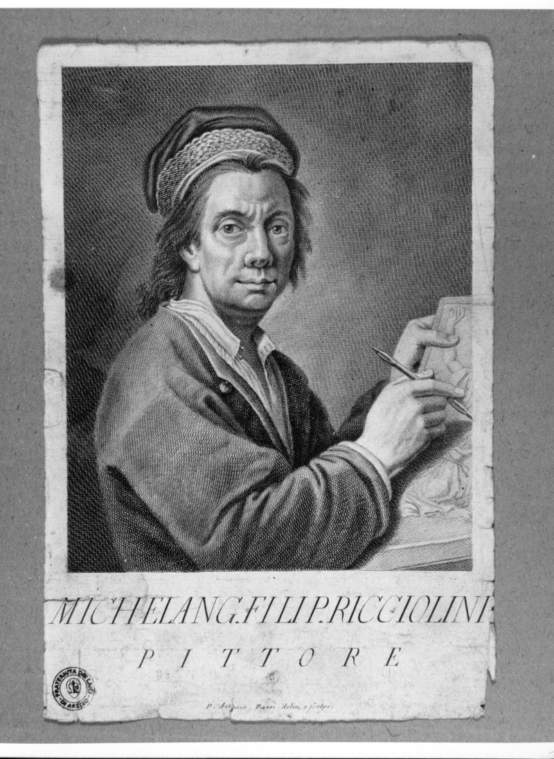 - Iscrizioni: in basso al centro:"MICHELANG. FILIP. RICCIOLINI/PITTORE";in basso al centro:"p. Antonio Pazzi delin, e Scolpi". La stampa fa parte della "Serie di ritratti de' pittori che se stessi di dipinsero esistenti nella R. Galleria di Toscana",il cui autore è Pazzi Pietro Antonio.