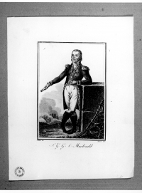 - Iscrizioni: in basso al centro:"S. G. G. A. Macdonald.";in basso a destra:" Sasso inc."; in basso a sinistra: "Nattini dis.". Stampa tratta da:"Serie di vite e ritratti de' famosi personaggi degli ultimi tempi. Opera dedicata a Sua Eccellenza il Signor conte Enrico di Bellegarde".