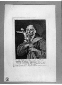 - Iscrizioni: Iscrizioni: in basso al centro:"Vera Effigie della vergine Suor Giovanna Purazzi (...)/ Nobil Terra Sua Patria";in basso da sinistra a destra:"Ant: Menicucci del monte S. Savino dip: - Ang: bat: Ricci Aretino dis: - Ant: Verico di Bassano inc:"; nel verso, in basso a destra, manoscritta a matita nera:"18/y 1/c".