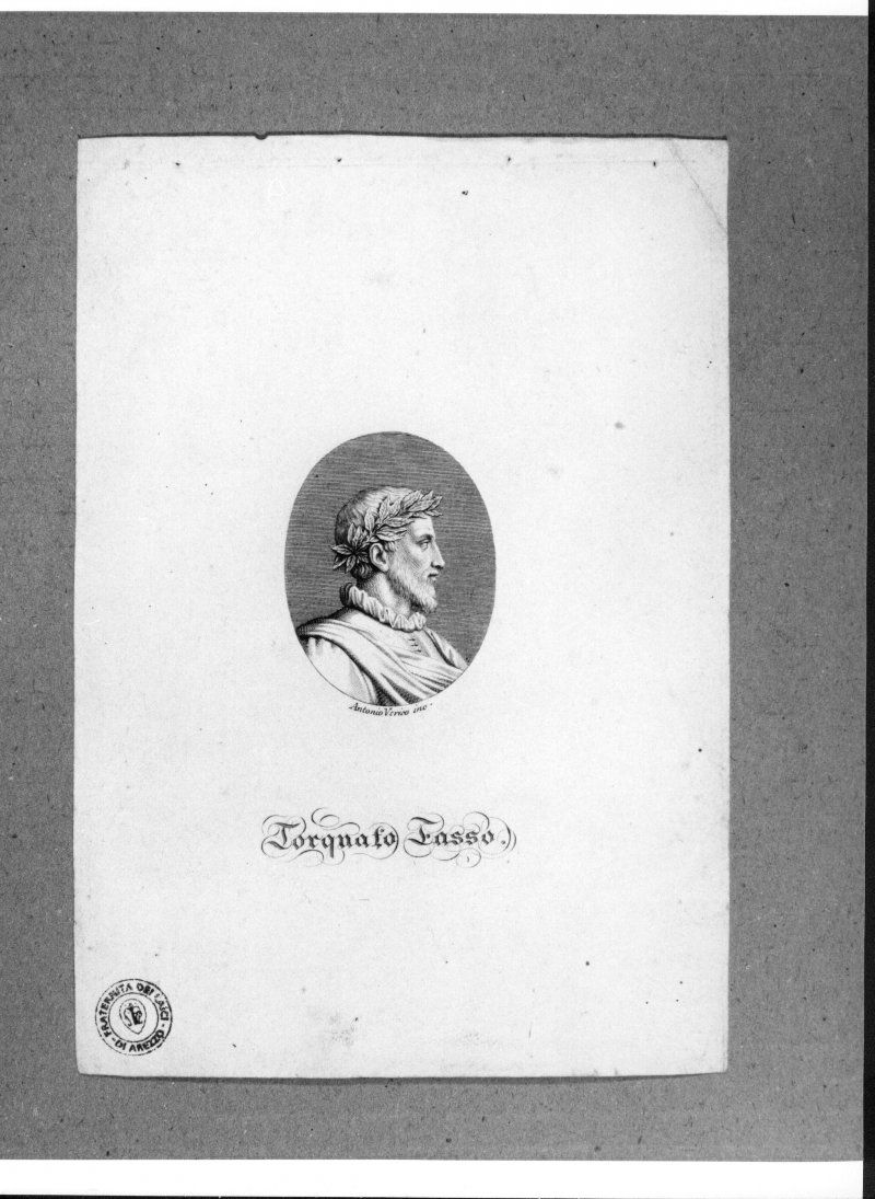- Iscrizioni: in basso, nel giro del medaglione figurato: "Antonio Verico inc."; in basso al centro: "Torquato Tasso."; nel verso, in basso a destra: "117/y 1/c".