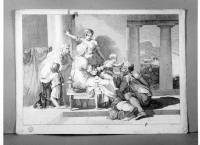 - Scena storica dove sono ritratte tre donne, un uomo barbuto seduto a aterra e due bambini.
