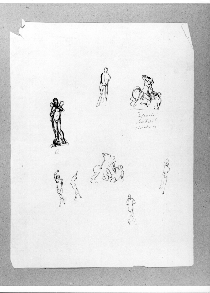 . RECTO: Sei studi a penna per Teseo che uccide il Minotauro.