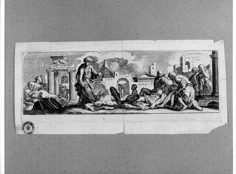 - Misure: Lastra: 95 x 271;Foglio: 127 x 290. Il foglio è stato piegato longitudinalmente a metà.