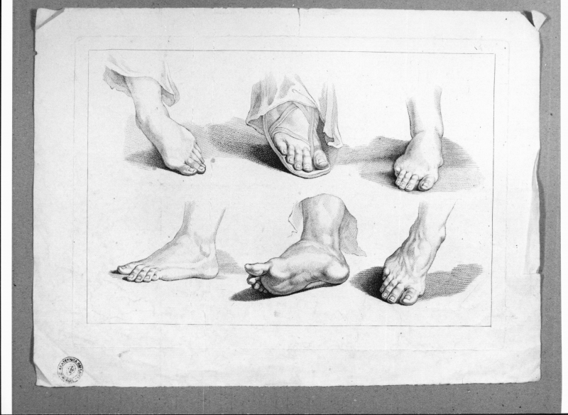 - Misure: Lastra: 215 x 305; Foglio: 260 x 353. Nel verso del foglio è presente uno studio a matita nera, di una figura femminile inginocchiata e volta verso destra.