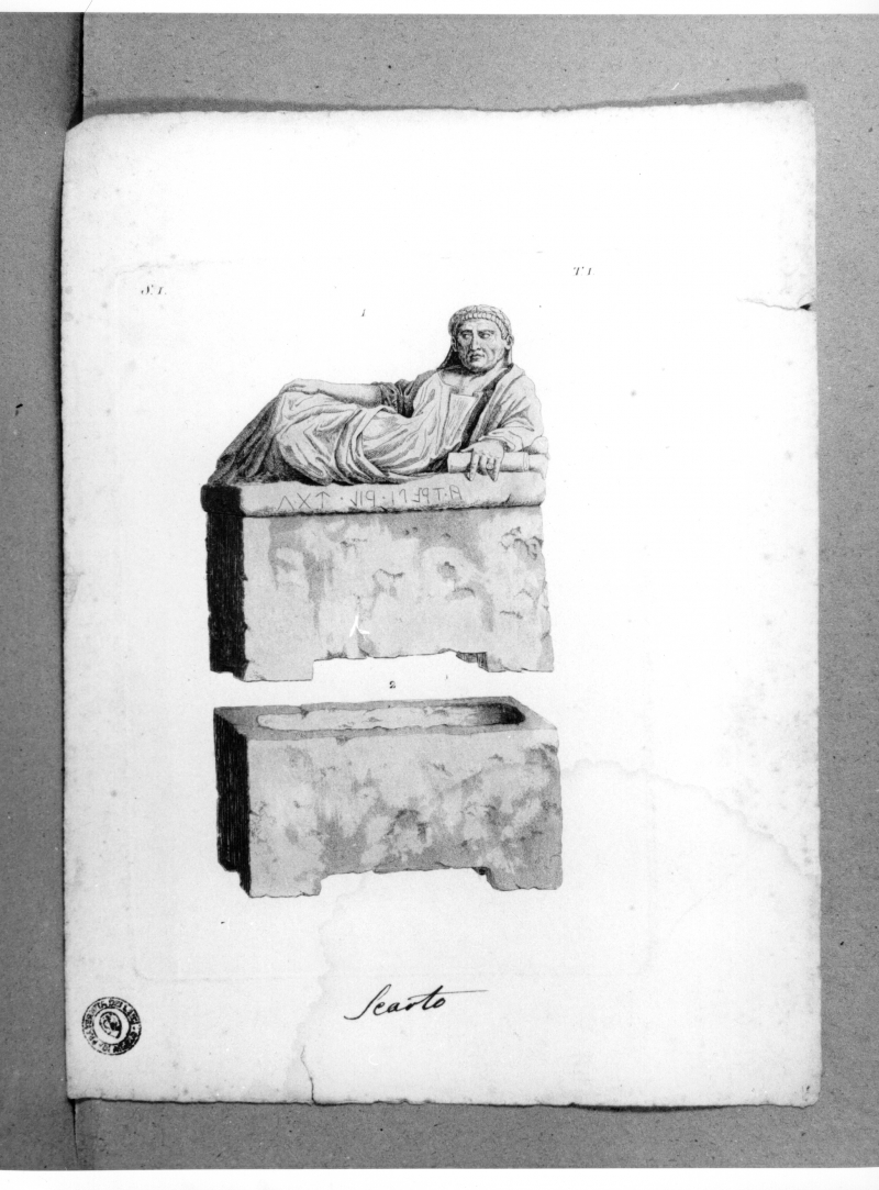 - Iscrizioni: in alto a sinistra: "S. I."; in alto a destra:"T. I."; in basso a l centro, al di fuori dei margini, manoscritto a penna e inchiostro:"Scarto".