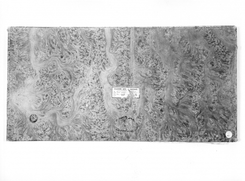 CONTIENE: 75 studi a penna e inchiostro su carta trasparente per rilievi da sculture greche. Dimensioni: Maggiore:245x500; minore:243x365. Iscrizioni: nel piatto superiore al centro manoscritta a lapis: ;Lucidi/Sculture Greche"; nel piatto superiore, manoscritta a lapis, all'interno di un cerchio:"73"; nel piatto superiore, in alto a destra, manoscritta a lapis, all'interno di un cerchio:"17". Cartellini: nel piatto superiore al centro: cartellino stampato "COLLEZIONE ARTISTICA BARTOLINI catalogo/Num. progress: [...]68/Sez. VII [...]"; nel piatto superiore in basso a destra: cartellino circolare stampato "4d", al disopra, manoscritta a lapis "Scat./S". TIMBRI: timbro "Collezione Artistica Bartolini"(piatto superiore, risguardo di fondo pagina, nel verso di ogni carta). Timbro "Fraternita dei Laici"(piatto superiore, nel verso di ogni carta). FILIGRANE: n.2; filigrana con GV in corsivo(in tutte le carte); filigrana con stella a 6 punte, sotto la scritta La Stella G. & C. Cini (risguardo). - Timbri